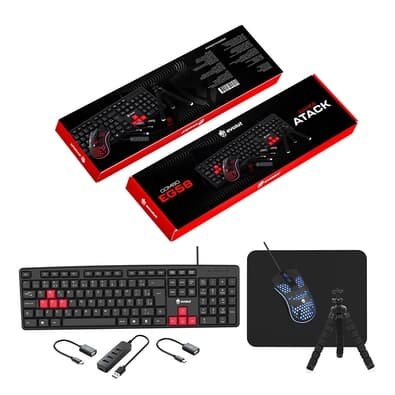 Kit Gamer Evolut Mobilador Atack Teclado + Mouse + Mousepad + Hub + Adaptadores + Suporte, USB, Preto - EG58
