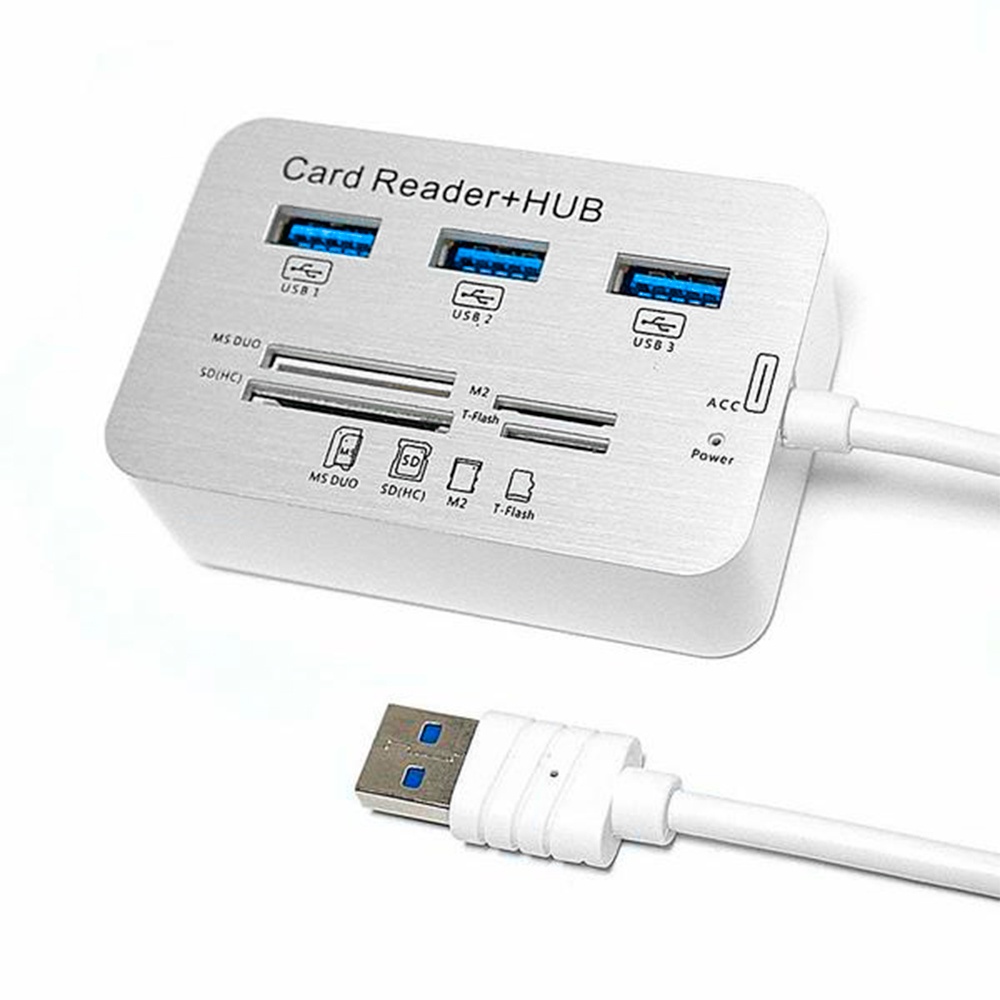 Hub USB 3.0 de 3 Portas com Leitor de Cartões SD Micro M2 MS JC-U-COMBO F3
