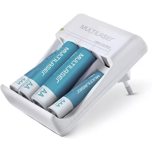 Carregador De Pilhas Multilaser Com 4 Pilhas Recarregável Aa 2500Mah Bivolt