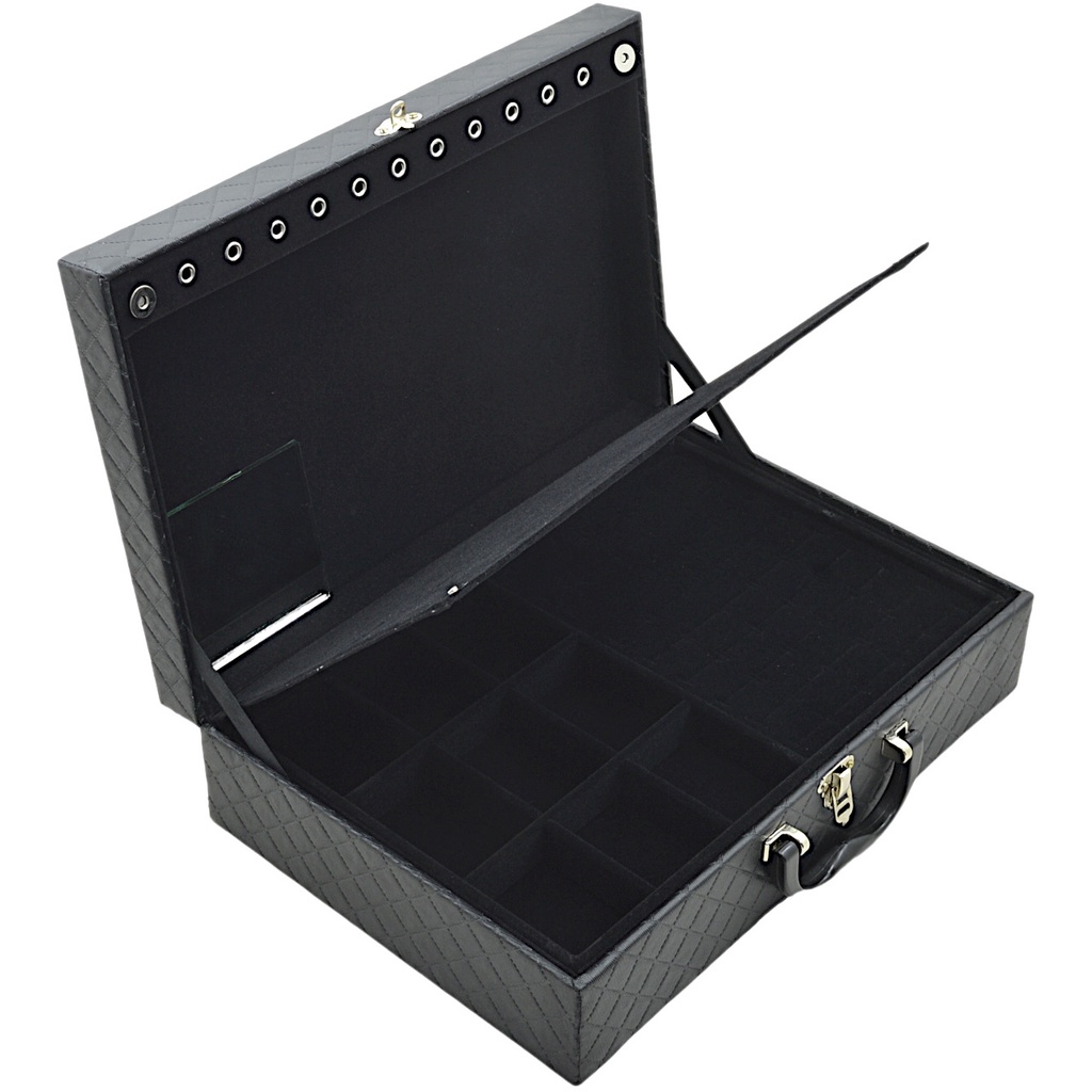 Maleta Caixa Porta Joias Bijuterias Grande Dupla Dijon Preto com preto com protetor de correntes