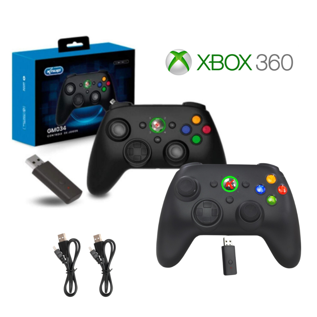 Kit Com 2 Controles sem fio com bateria recarregável compatível com Xbox 360 e PC Gamer COMPUTADOR