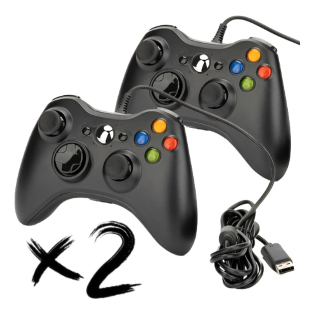 Kit 2 Controle Xbox 360 Pc Windows Notebook Com Fio Xboxslim
