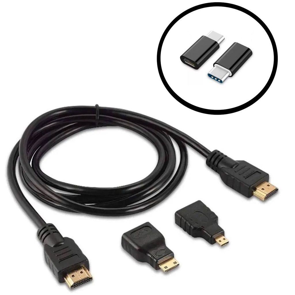 Cabo Hdmi 3 Em 1 Hdmi Micro 1.5m 1080p + Adaptador Tipo C