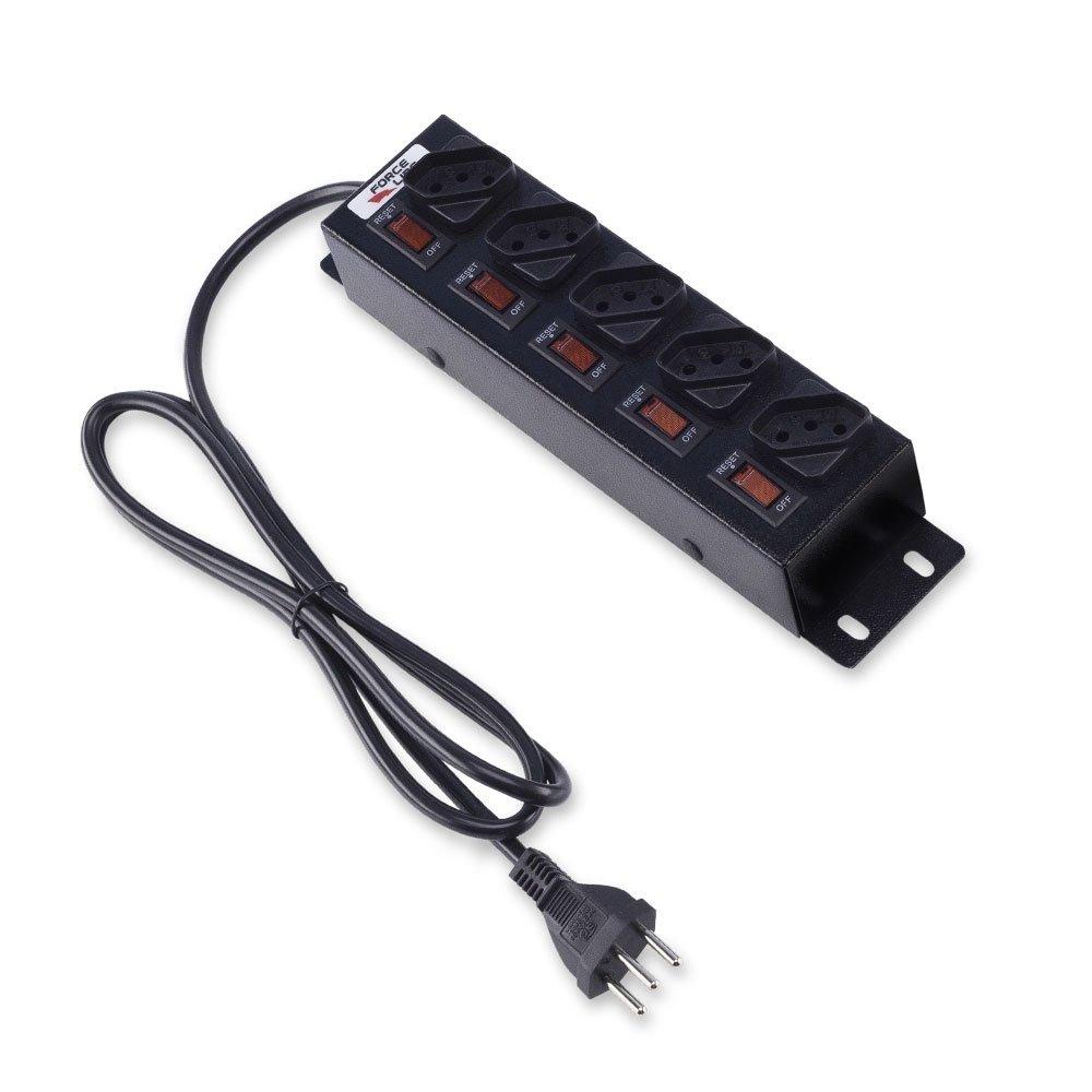 Filtro de Linha com Disjuntores Rearmáveis Individuais 5 Tomadas Preto - Force Line