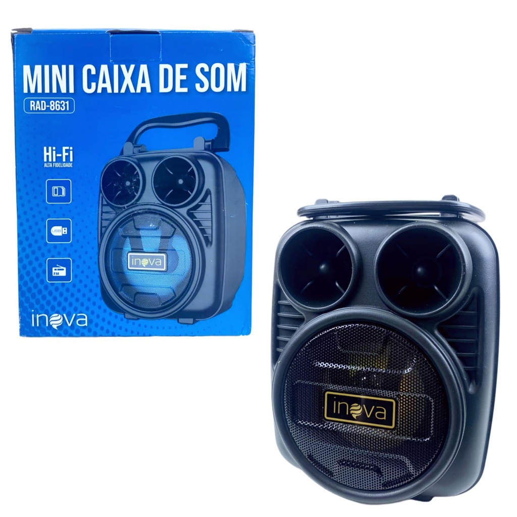 Mini Caixa De Som Estéreo Bluetooth Rádio FM Entrada USB Microfone AUX Cartão de Memória Inova RAD-8631