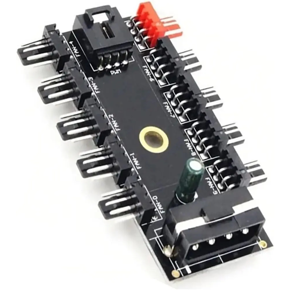 Hub Multi Fans Até 10 Cooler 3 E 4 Pinos Controle Pwm Molex 12v