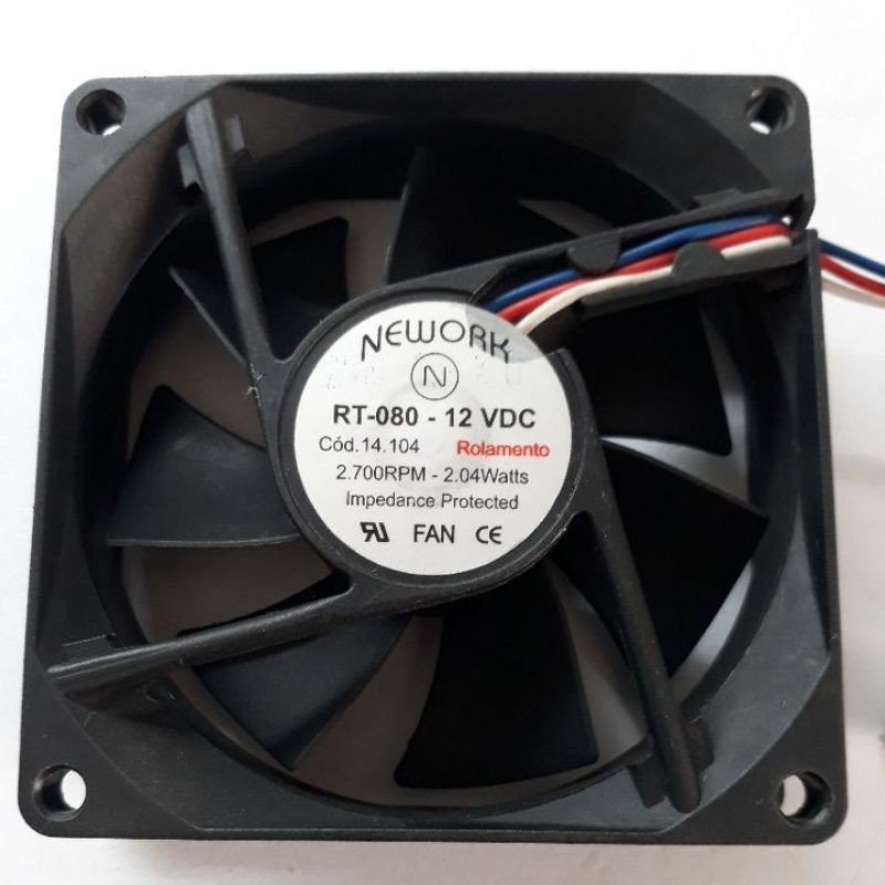 COOLER 80X80X25MM 12V 2.04W NEWORK RT-080 14.104 2700RPM C/ROLAMENTO 3 FIOS
