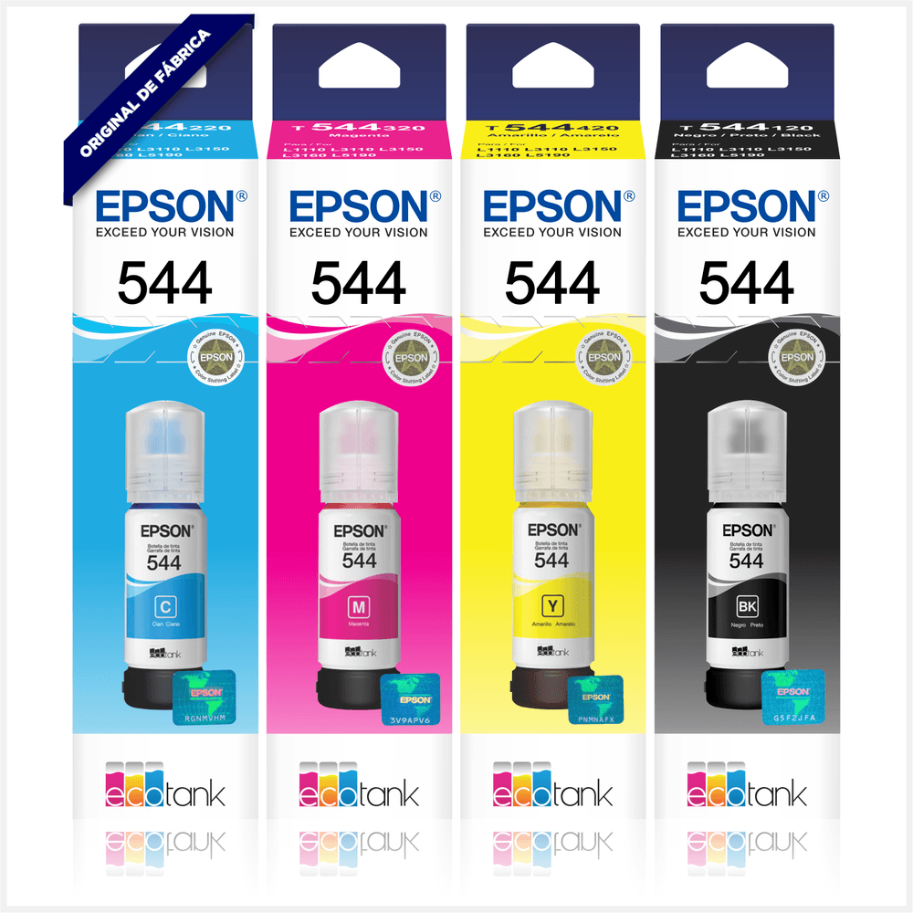 Kit Refil de Tinta Epson T544 Ecotank, Compatível Impressoras L1210, L1250, L3110, L3150, L3160, L3210, L3250, L3260, L5190, L5290 - 4 Unidades