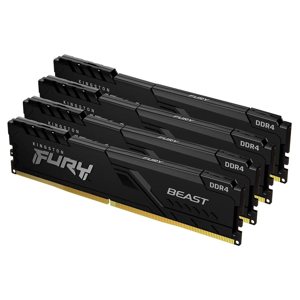 Memória Kingston Fury Beast, 128GB (4x32GB), 3600MHz, DDR4, CL18, Preto - KF436C18BBK4/128