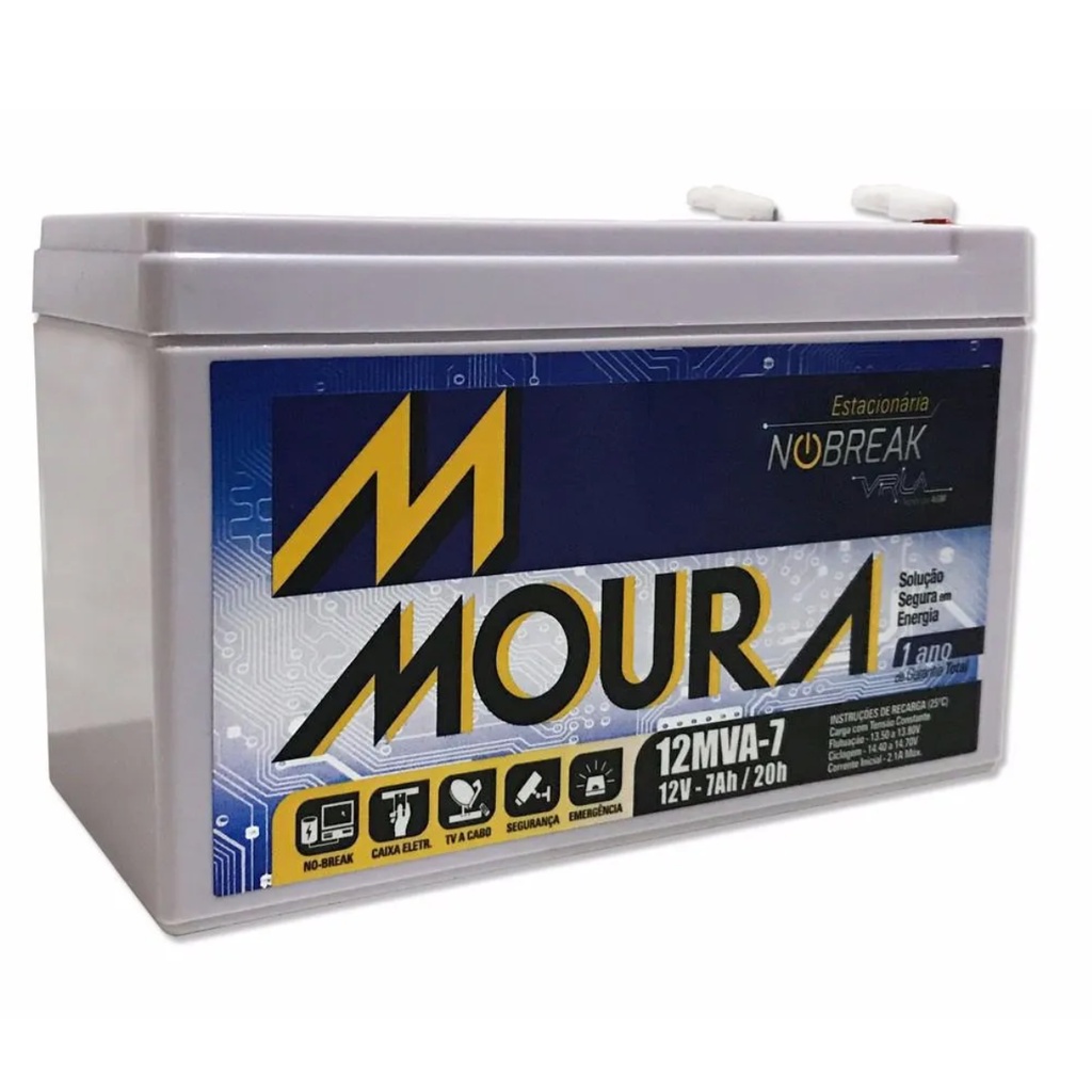 Bateria Moura Estacionaria 12MVA-7 12V 7Ah Alarme Cerca elétrica No-break
