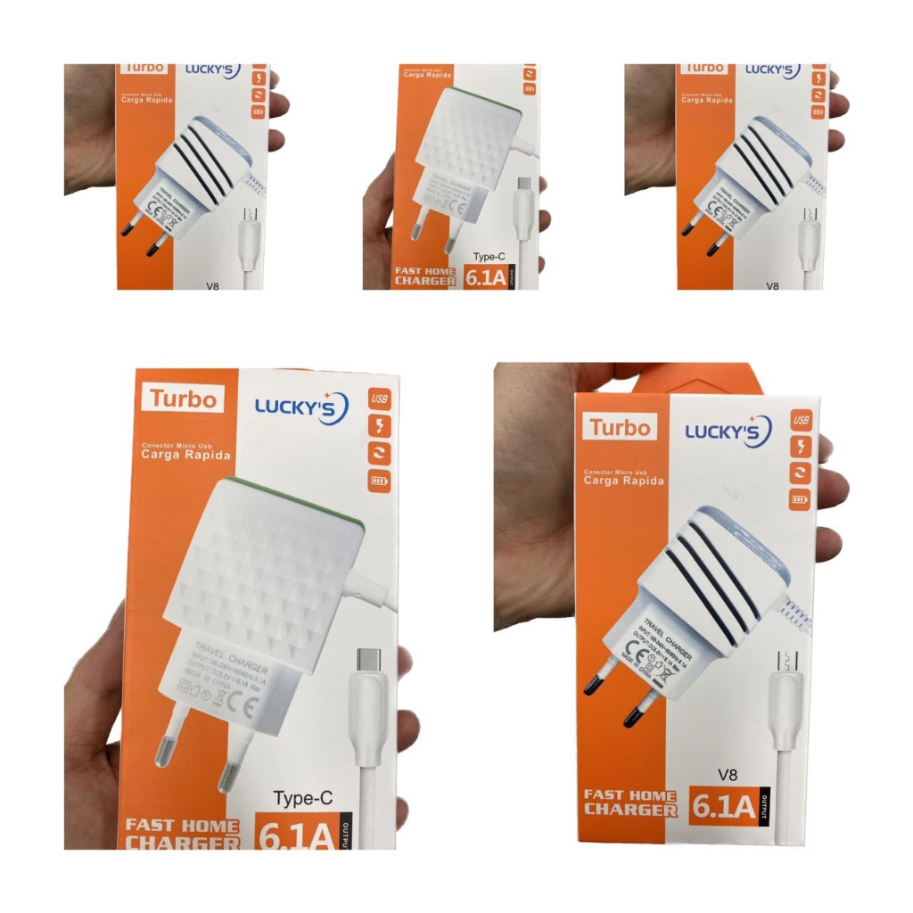 Kit 5 Carregador De Tomada Type C Ou V8 Com 2 Saídas USB 6.1A Cabo 1.2 Metros Rápido