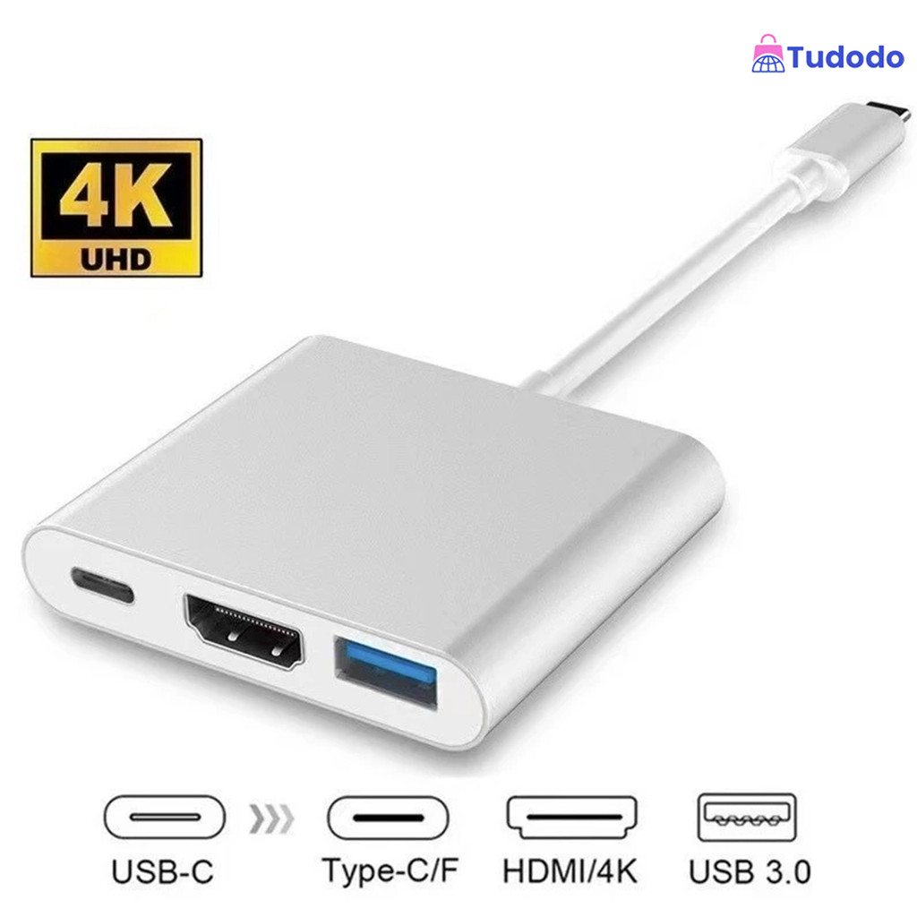 Adaptador 3 Em 1 Tipo C Hub HDMI 4K USB 3.0 Com Cabo De Dados Carregador De Alumínio De 12 W Para Telefone E Laptop