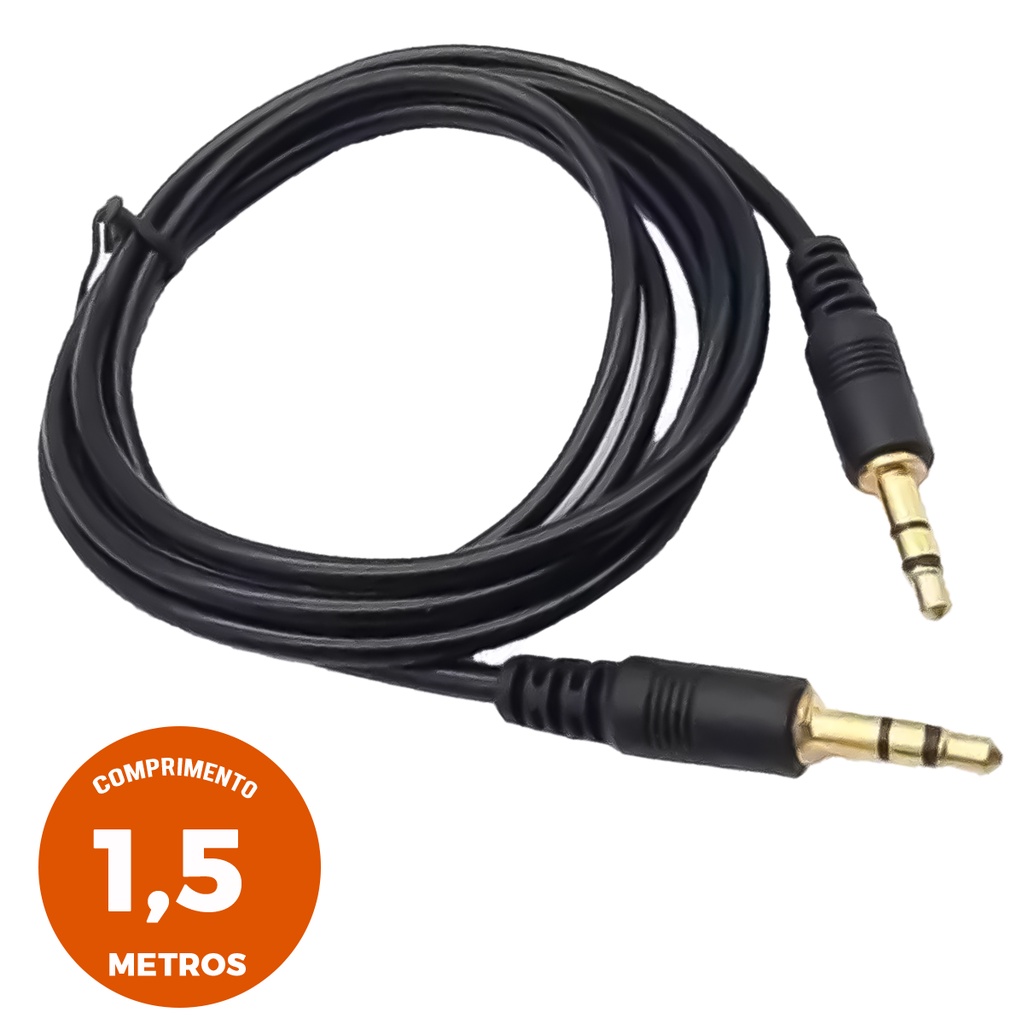 Cabo P2 x P2 Auxiliar Som de Qualidade Áudio Universal 1.5 Metros Reforçado