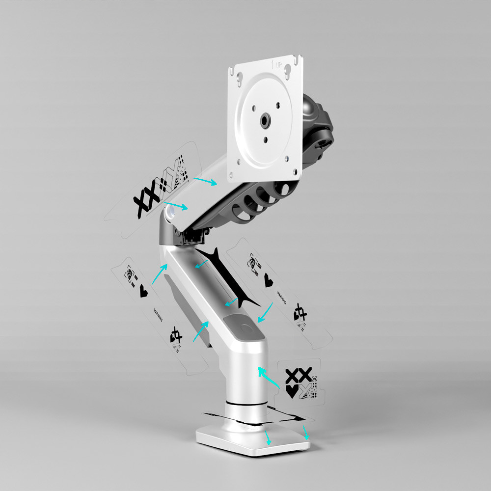 Suporte Articulado de Mesa ELG, F80SKIN-W, p/ Monitor 17"-35", Pistão a Gás, Giro 360°, Branco