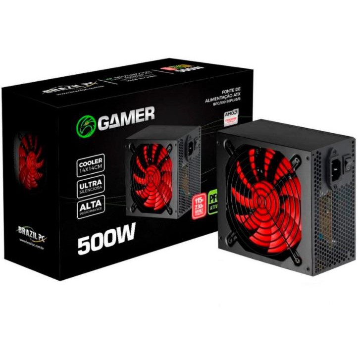 Fonte Gamer Atx 500w Real 80 Plus Bronze Brazilpc Bpc-500-80 Plus 24 Pinos Bivolt