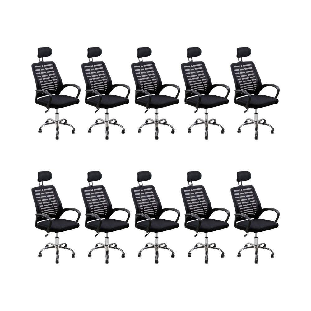 Kit 10 Cadeiras Escritório Oficial Webshop, Diretor Mesh, Peso Recomendado: 120 kg, Encosto De Cabeça - Preta