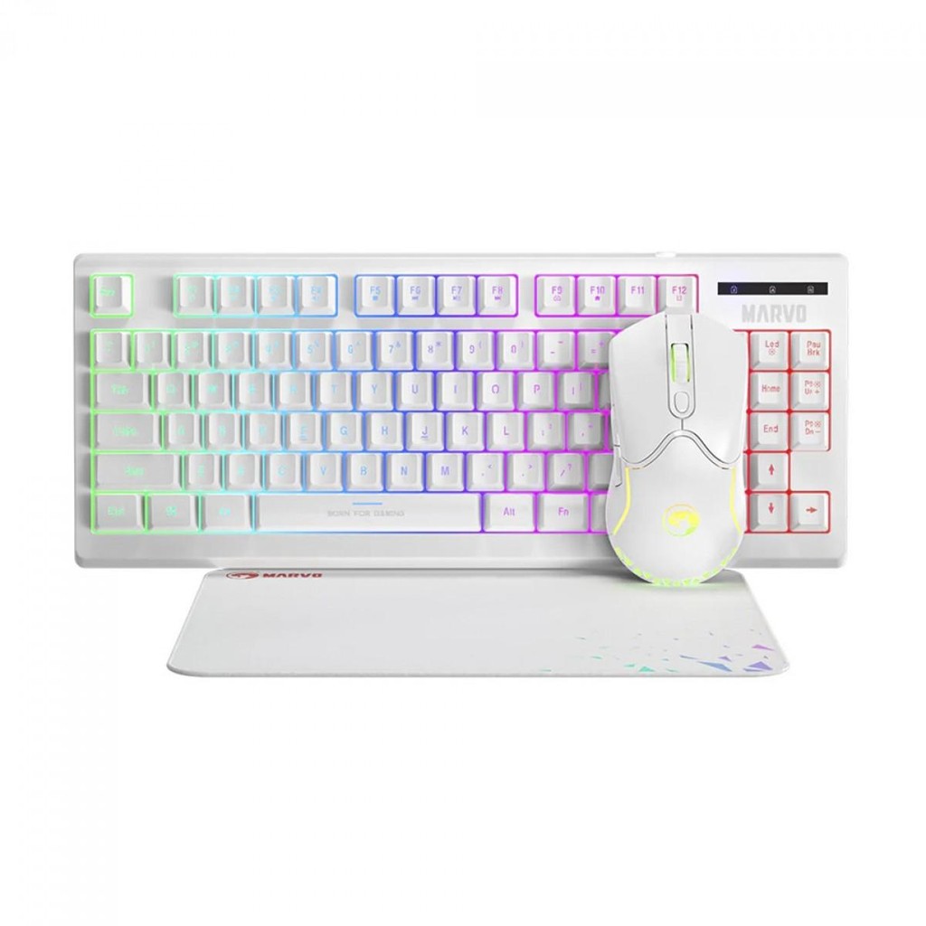 Combo Gamer Marvo CM310 3 Em 1, Teclado, Mouse e Mousepad, RGB, Branco, CM310 WH EN