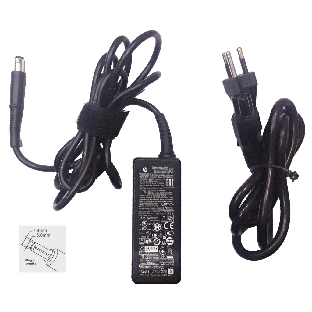 Fonte para Notebook HP 45w 19.5v 2.31a Bivolt 744481-003 plug grosso - Usada