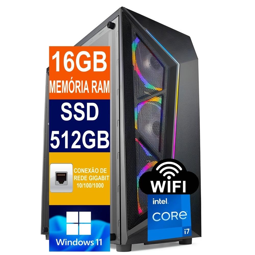 PC Gamer Intel Core I7 10700, 16GB De Memória, DDR4, SSD Nvme M.2 512GB + Windows 11 Pro