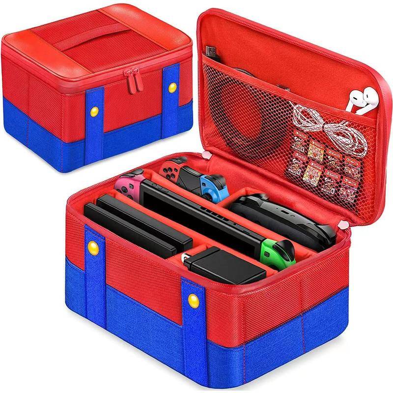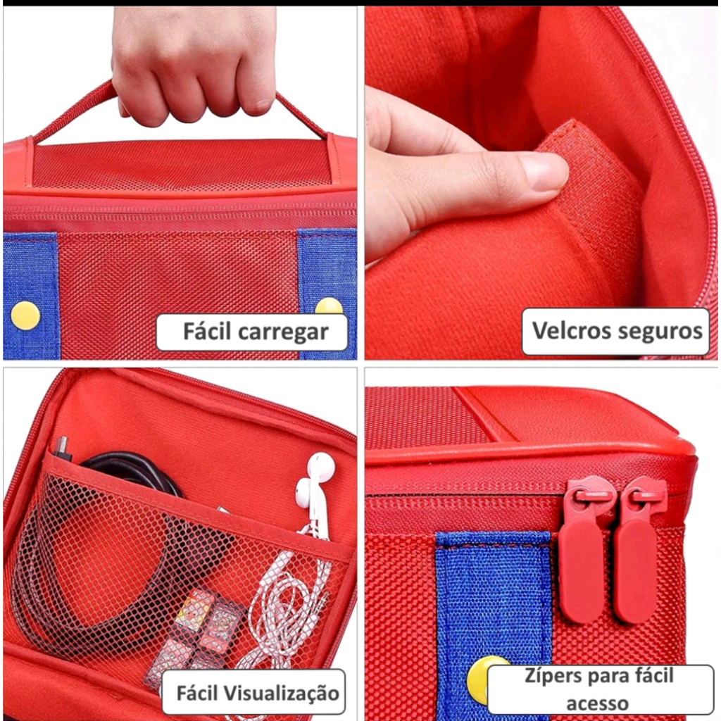 Case Capa Bolsa Estojo Transporte Premium Nintendo Switch Vermelha Preta Azul Macacão Mario Switch V1 V2 e Switch Oled - Proteção Resistente