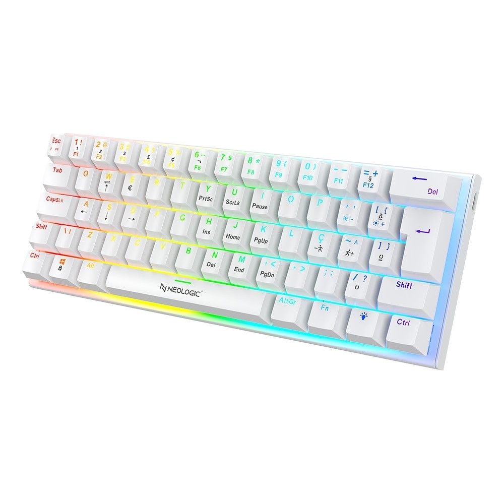 TECLADO GAMER MECÂNICO NEOLOGIC PRECISION POLAR 60% RAINBOW 61 TECLAS SWITCH BLUE BRANCO CABO TIPO C - PREPLR-BLUE