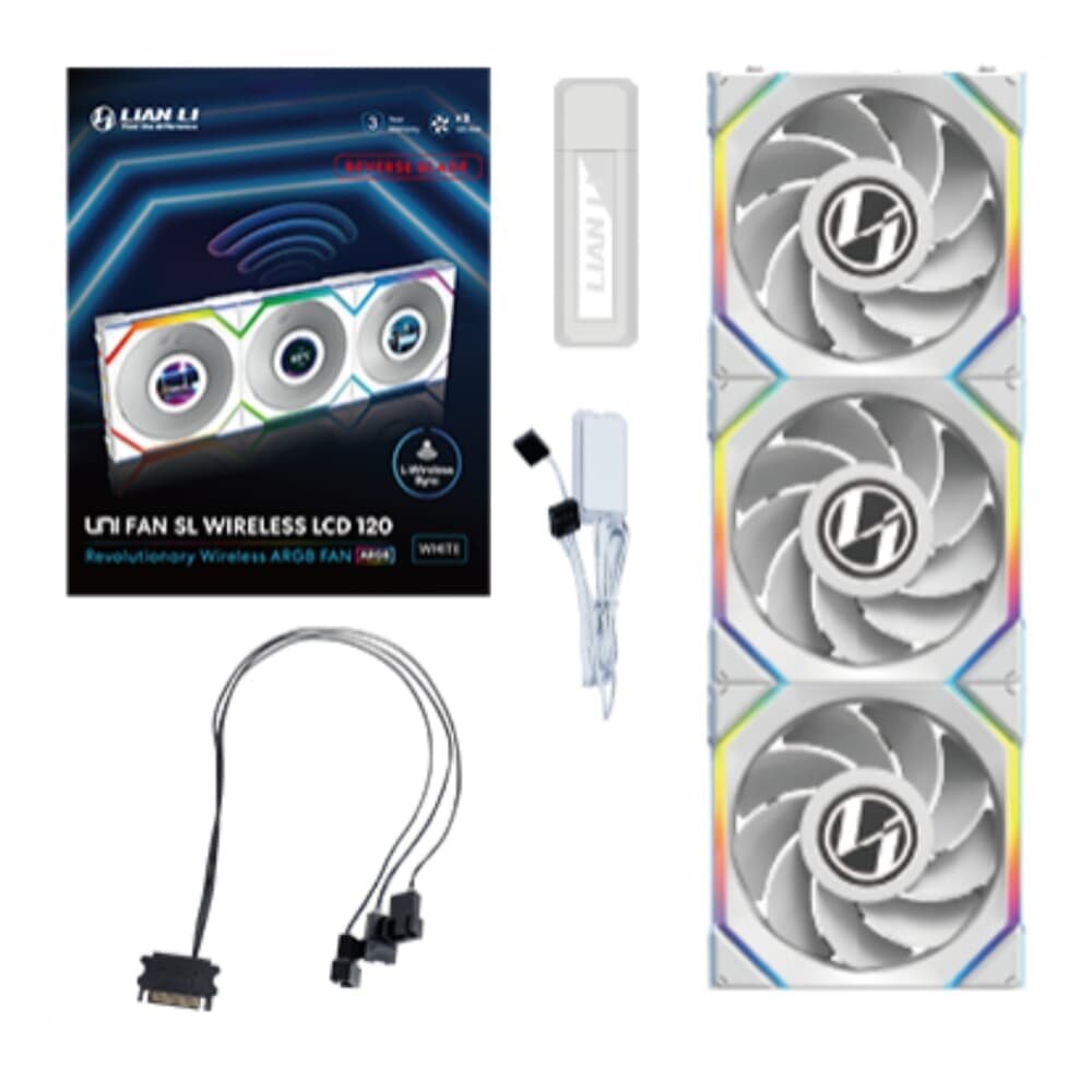 Kit 3 Fans 120mm Lian Li Uni Fan Sl Wireless Lcd 120 Reverse Blade, ARGB, C/ Controladora, White - 12rsllcd1w3w