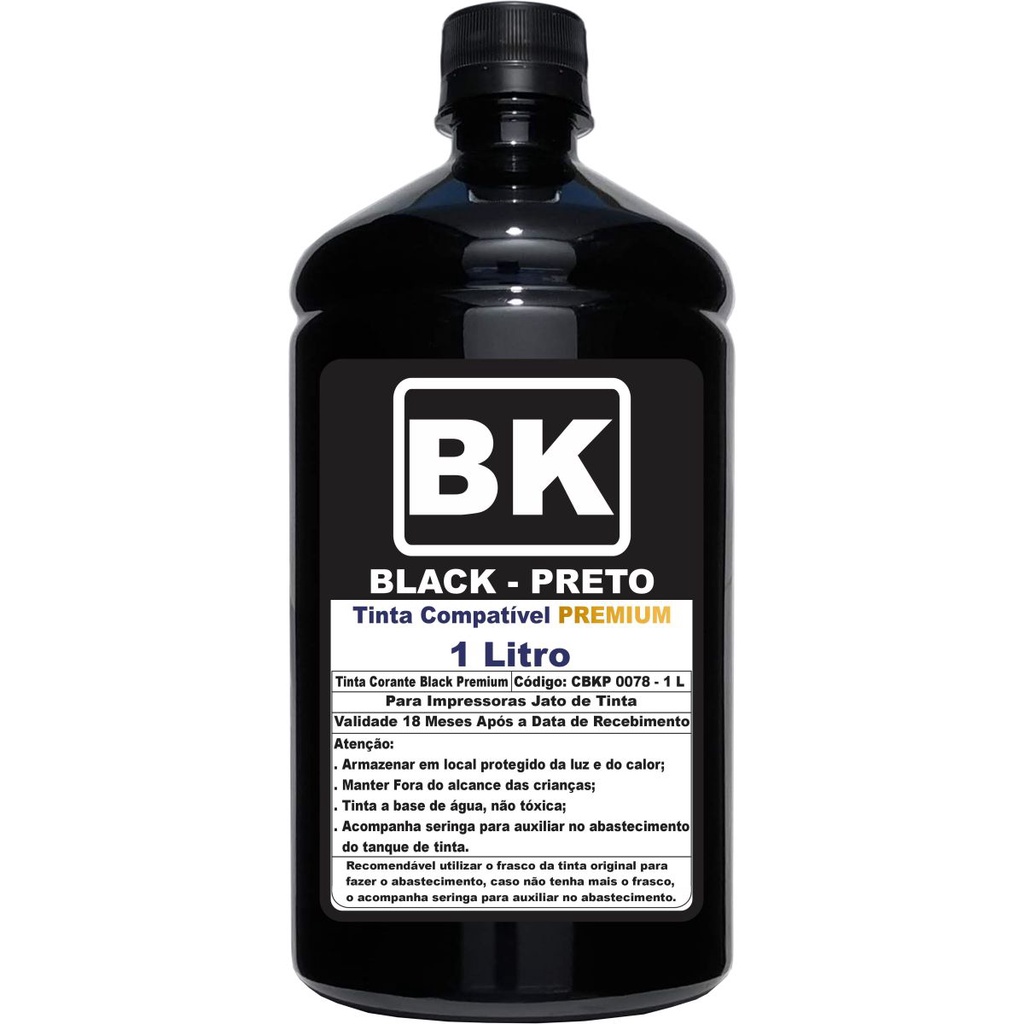 Tinta Preta 1 Litro Para Epson L3150 L3110 L3250 L3110 L1250 L5190 L5290 Compatível Refil 544