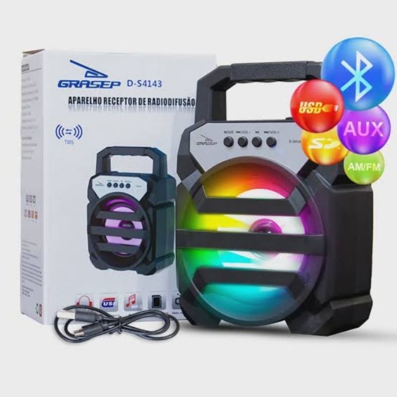 Caixa De Som Lead Bluetooth Pen Drive/Rádio/USB/TF/FM/MP3 Portátil Amplificada Música Grasep D-S4143 Original