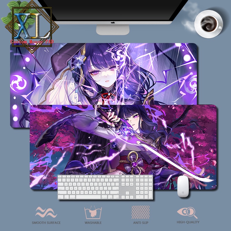 Mouse Pad XL Custom Gaming Raiden Shogun-Extra Grande Antiderrapante Para Jogos/Escritório