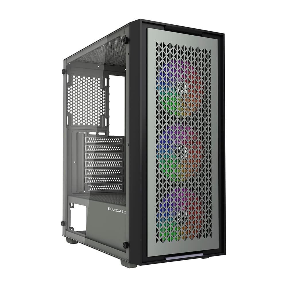Gabinete Gamer Bluecase BG-050 X-frame SE, Mid Tower, 3x Fan ARGB, Lateral em Vidro, Cinza e Preto - BG-050SEGBBX