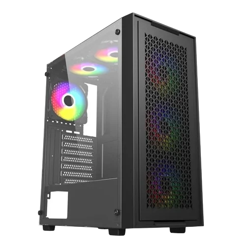 Gabinete Gamer Bluecase X-frame Mid-tower Lateral De Vidro Com 3 Fans RGB De 120mm Frontal Removível, Bg-050 - Preto