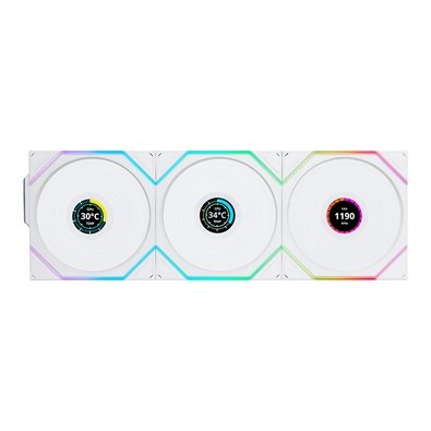Kit com 3 Ventoinhas Lian Li UNI FAN TL LCD, 120mm, ARGB, Branco - 12TLLCD1W3W