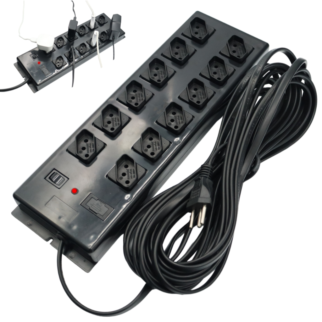 Filtro Linha Régua 12 Tomadas Cabo 1,2 / 3 / 5 / e 10 Metros 10a Bivolt Preto Certificado