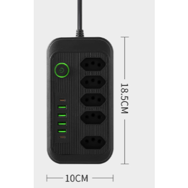 Extensão Filtro de Linha 2m 10A Com 5 tomadas de energia 2 tomadas universal 2 USB 1 Tipo-C Bivolt 2500W
