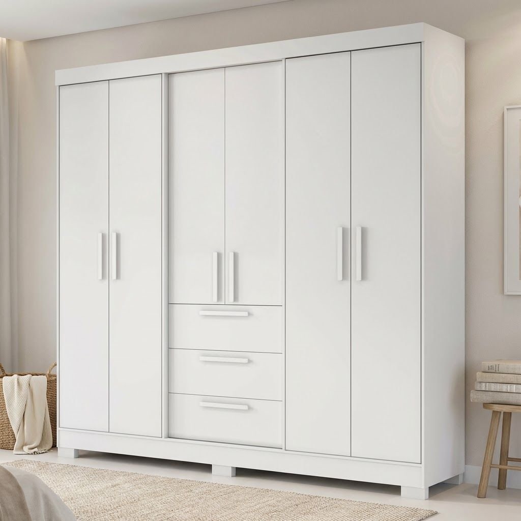 Guarda Roupa Casal 6 Portas 3 Gavetas 100% MDF Select Branco