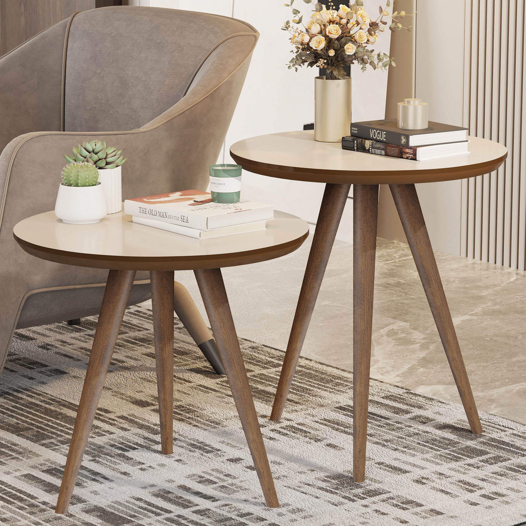Conjunto 2 Mesas Retrô Pés Palito Apoio e Lateral Star - Jm3 Móveis:off White/freijó