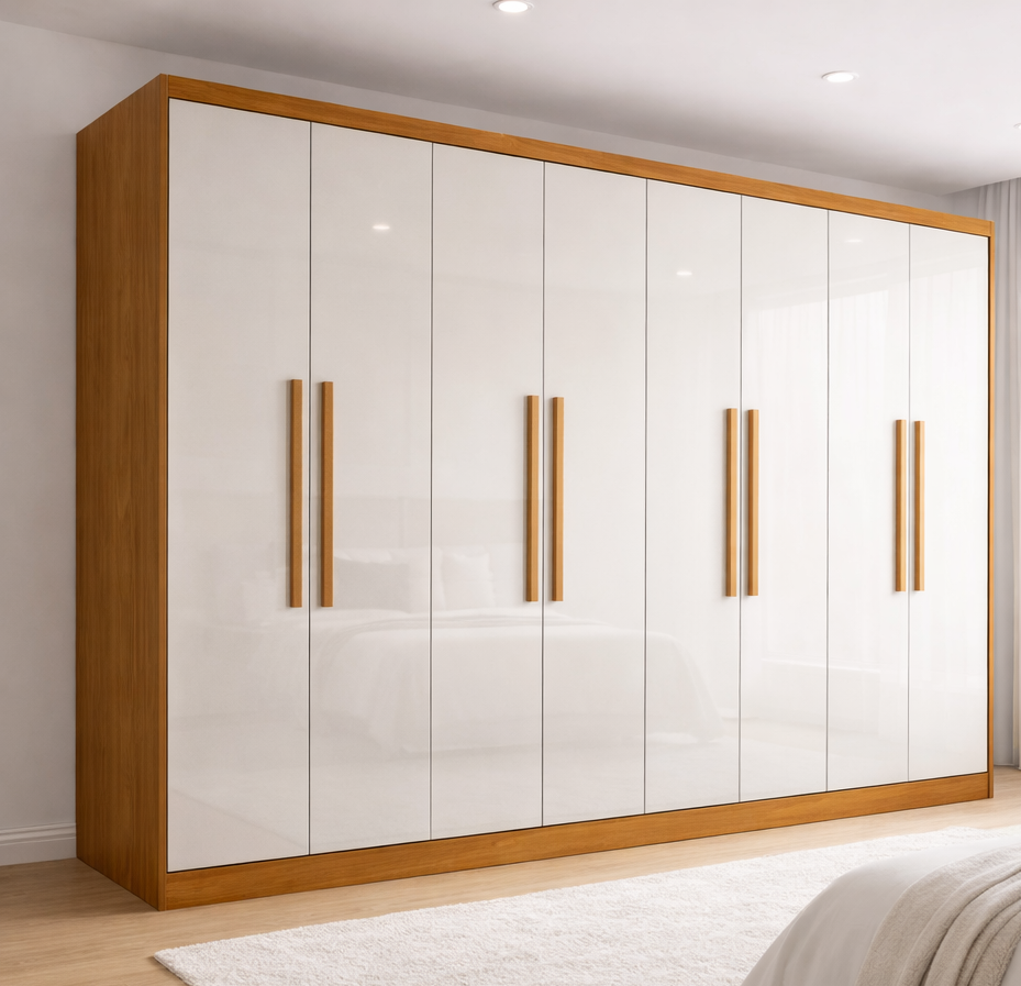 Guarda Roupa Casal 100% MDF 8 Portas 4 Gavetas Jatobá Plus Cinamomo/Off White YesCasa