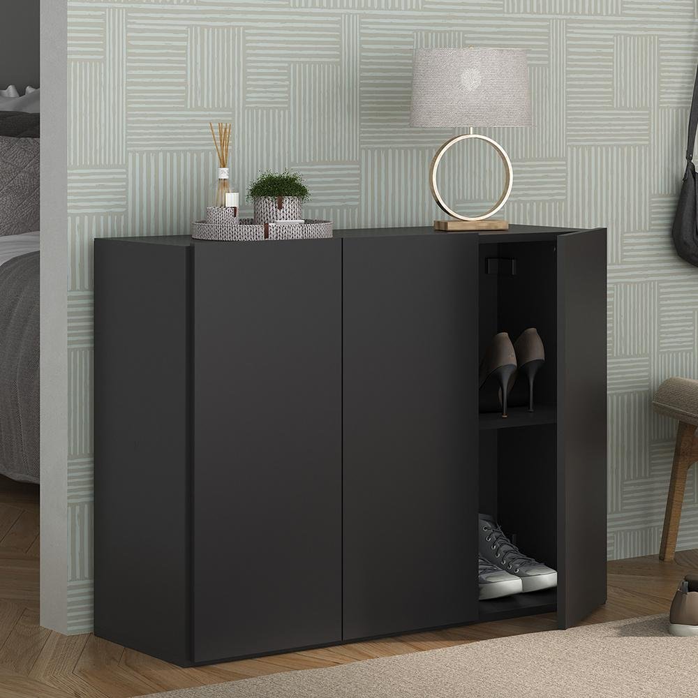 Sapateira 3 Portas Nina Multimóveis Preta