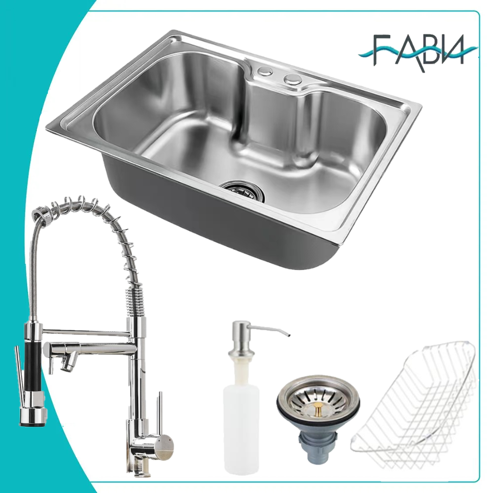 Cuba para cozinha gourmet pia aço inox com acessórios e prata Torneira gourmet