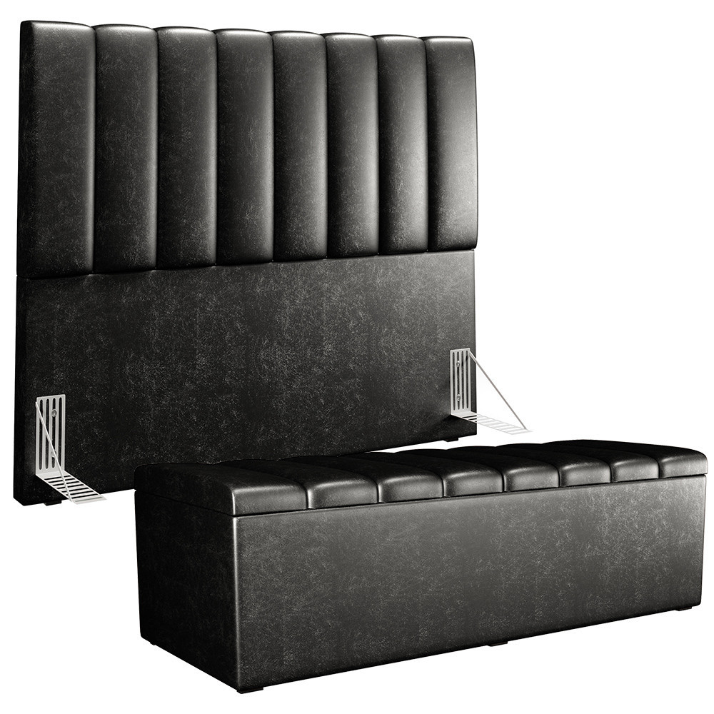 Kit Cabeceira Cama Box Casal 140cm Calçadeira Recamier Baú Dália W01 Couríssimo Preto - Lyam Decor
