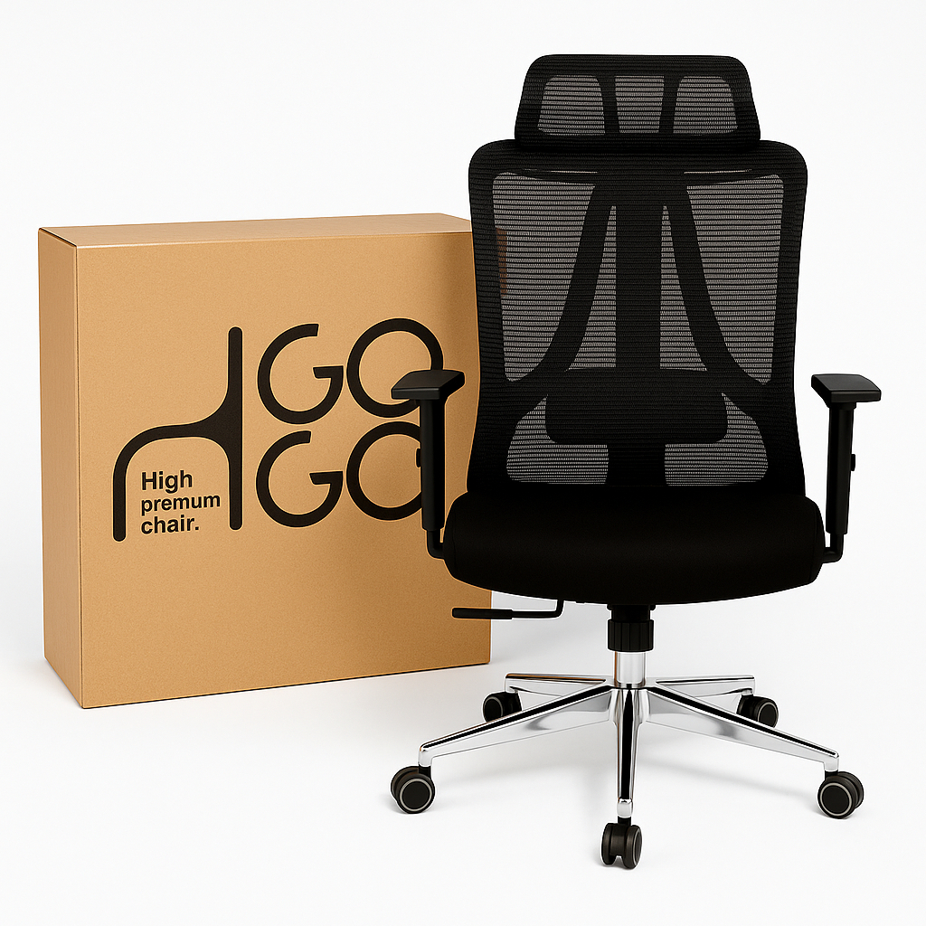 Cadeira Escritório Presidente Ergonômica Gogo Chair Giratória Resistente 150kg Preta com Apoio de Cabeça