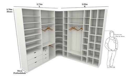 Kit Closet Loja Modulado Canto M86 100% Mdf