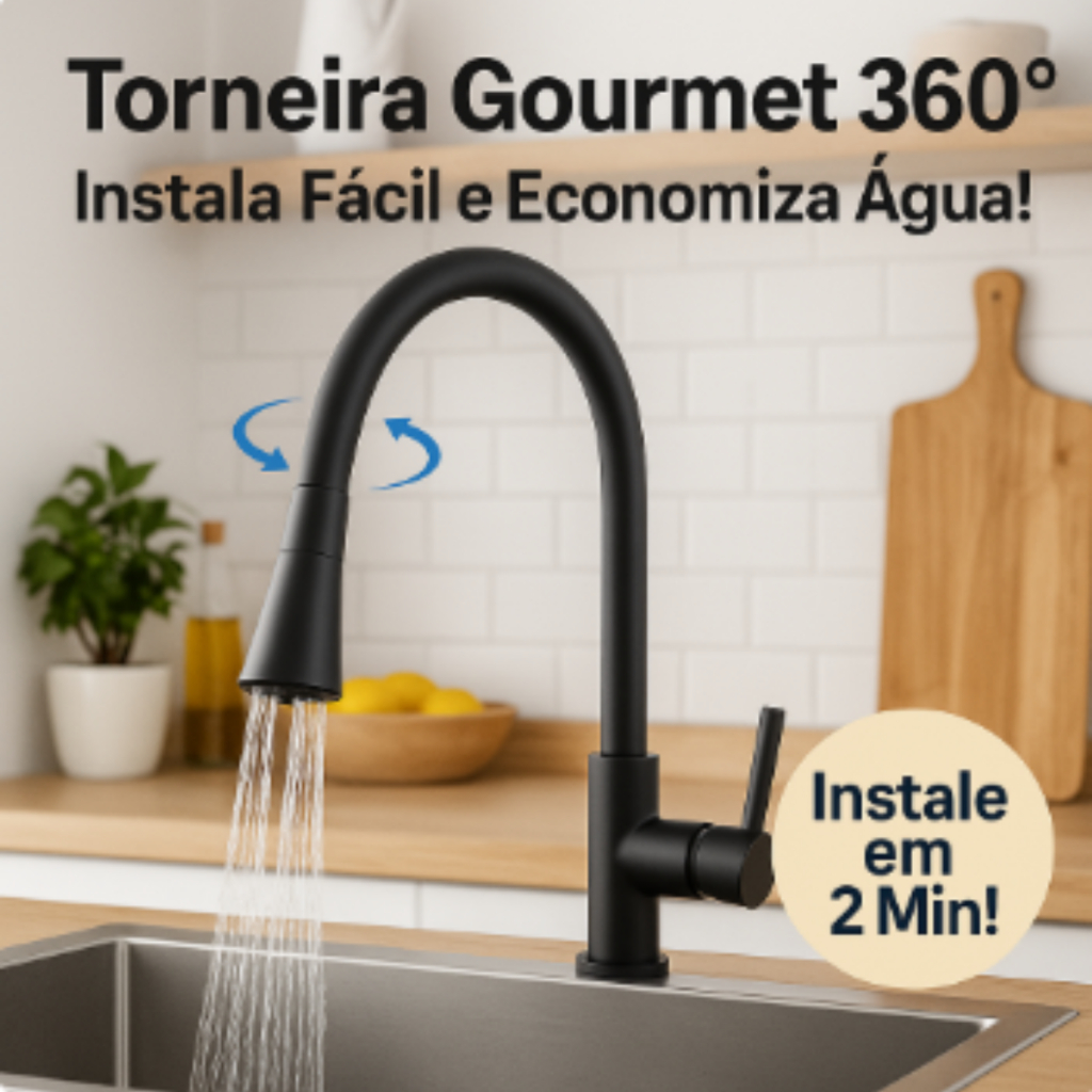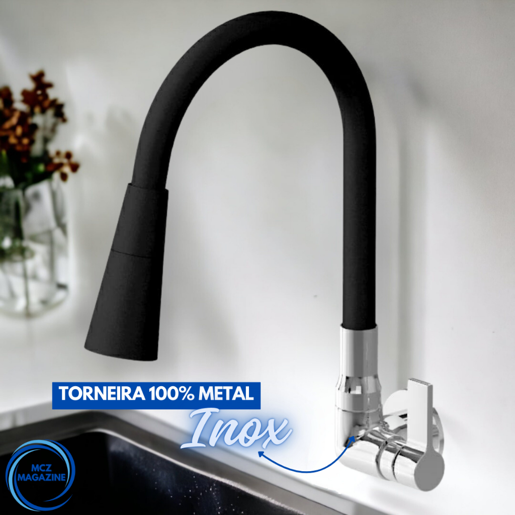 Torneira Gourmet Flexível Para Cozinha Mesa Preta 1/4 de Volta C51