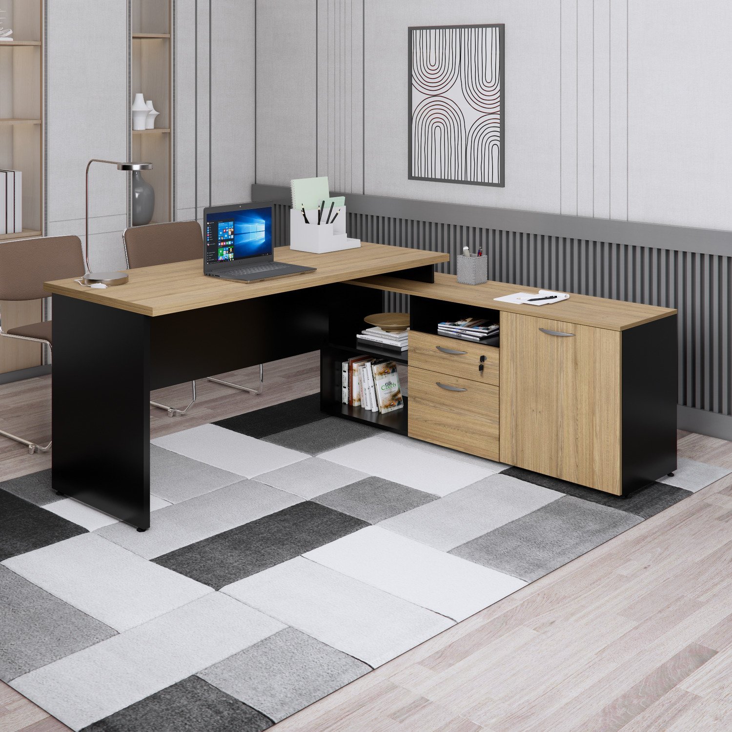 Mesa para escritório em L Executiva 170x180cm com Balcão Cayman Yescasa