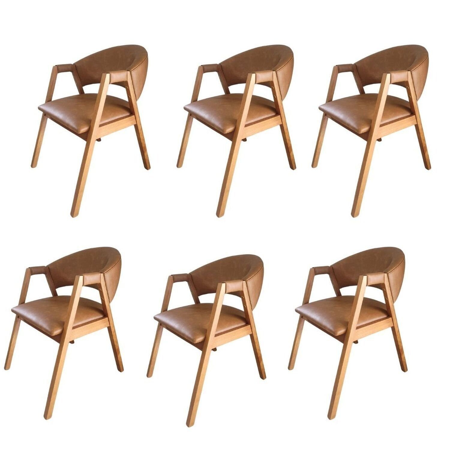 Kit 6 Cadeiras para Mesa de Jantar com Encosto Curvo em Madeira Maciça Hibisco