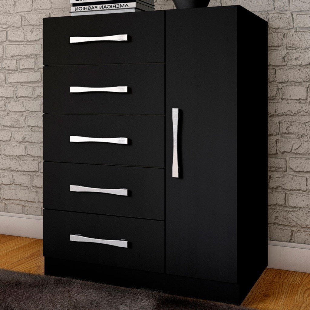 Cômoda 5 Gavetas 1 Porta Corais Preto Fosco - Pnr Móveis