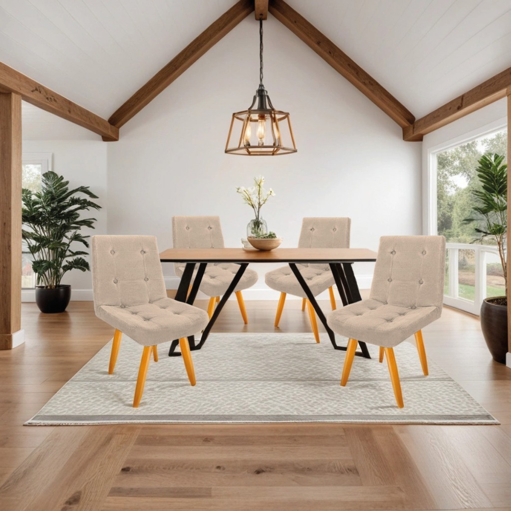 Kit 04 Cadeiras Para Sala de Jantar e Estar Living Estofada Suran L02 Linho Cru - Lyam