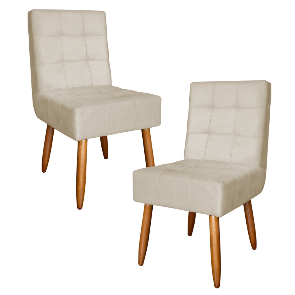 KIT 2 Cadeiras Estofada Monalisa Suede Mesa de Jantar Cozinha Sala de Estar Quarto Escritório Bege