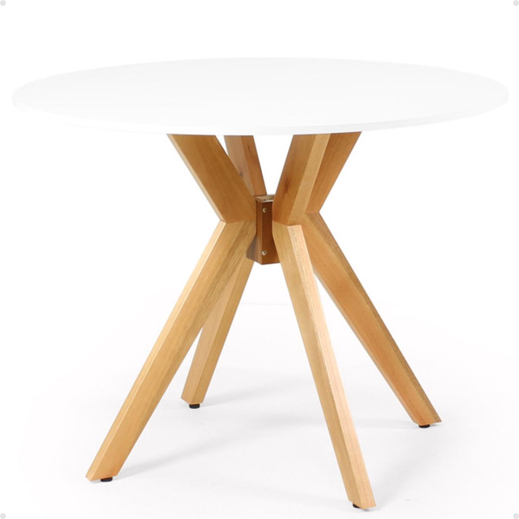 Mesa de Jantar Cone Redonda 120cm em Laca 4 A 6 Lugares - Branco e Madeira Feijó