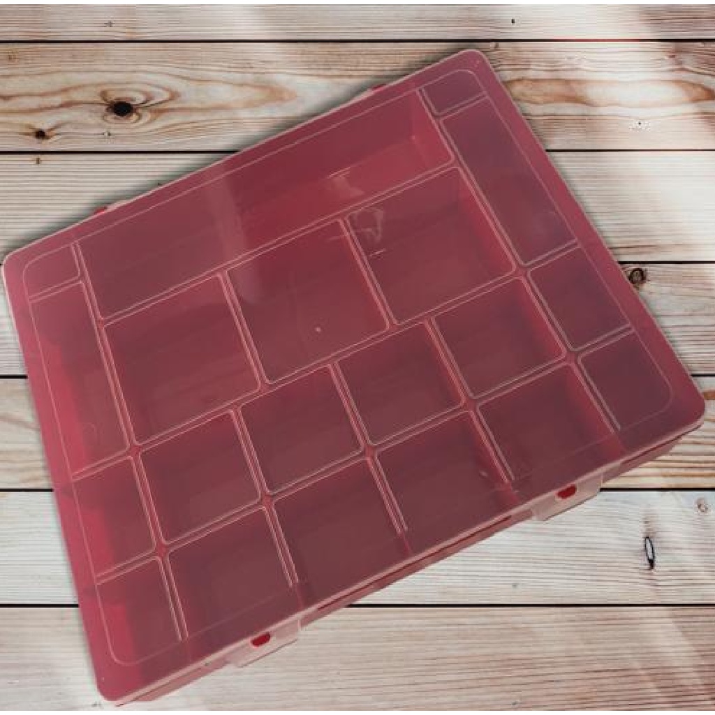 Caixa Organizadora de Plástico com 20 divisórias VERMELHA Grande (34,5 x 26,5 x 6,0 cm) . Organize Joias e Bijuterias, Itens de costura, Remédios, Anzóis e Artigos de Pesca, Artigos para Artesanato, Ferramentas e Materiais de Escritório